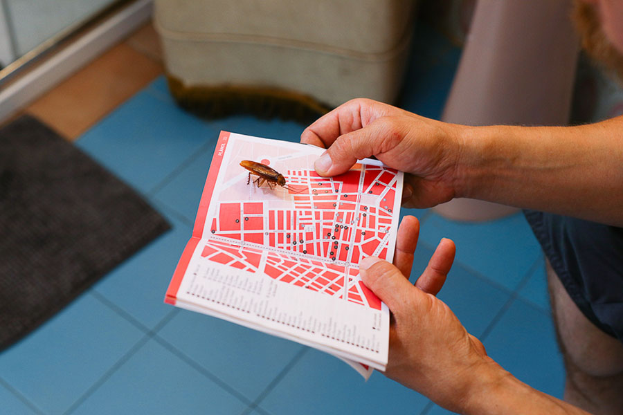 Ara sec a la tassa del bany, llegint el darrer exemplar del Benimaclet Entra i veient pel rabet de l’ull com de sota del cabàs de vímet on guardem apilotats els còmics i les revistes, aguaita el cap una modesta panderola, un magnífic exemplar de la malfamada Periplaneta americana. Jo me la mire encuriosit, provant d’endevinar la seua trajectòria erràtica. Però em sorprén amb un moviment inesperat. D’un bot es planta dempeus sobre la revista que prenc a les mans, em mira i em diu “no sé com hòsties se t’acut quedar-t’hi en estiu”.